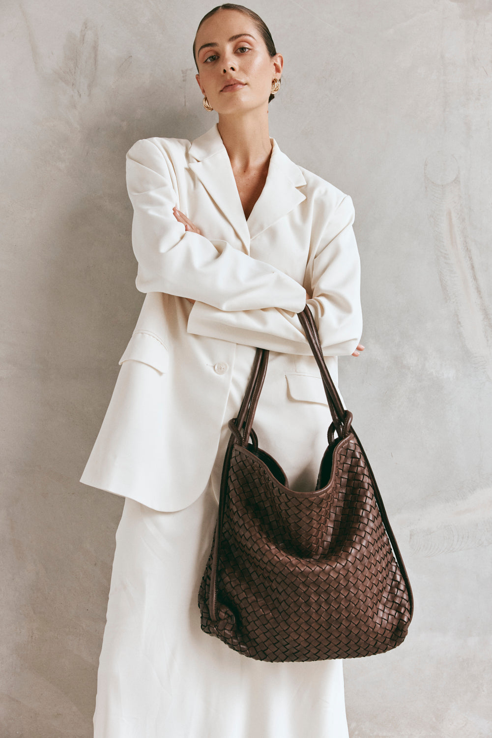 Woven Bella Dark Chocolate 2-in-1 Convertible Backpack Tote