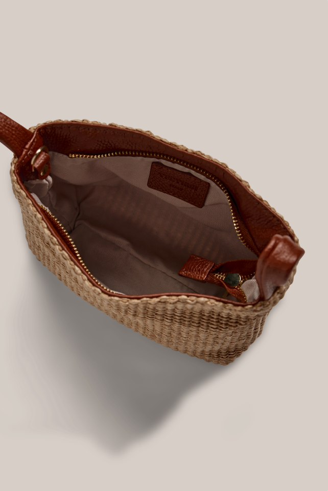Meet the Jess Mini Pouch. A compact raffia essential designed for effortless summer styling. Crafted in woven raffia with smooth tan Italian leather accents and gold hardware, Jess features a full zip closure to keep your essentials secure.